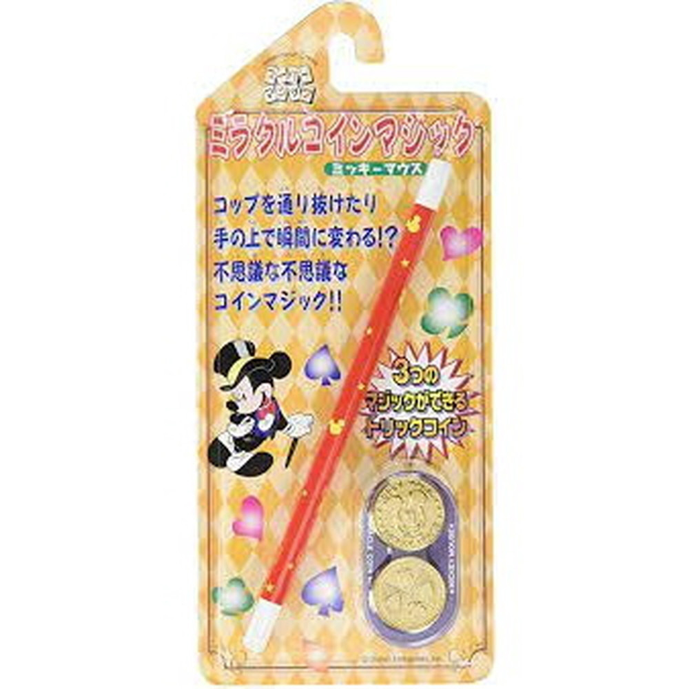 金属製のミッキーコインと魔法の棒を使ったおもしろいコインマジック。やさしいものから本格的なものまで3種類のコインマジックが楽します。