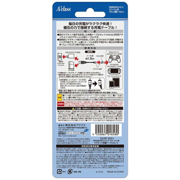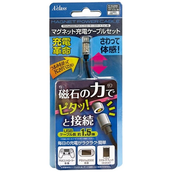 商品名 PSVita2000/PS4コントローラー/スマートフォン用マグネット充電ケーブルセット 【MAGNET POWER CABLE】【PSV(PCH-2000)/PS4】 [SASP-0331]