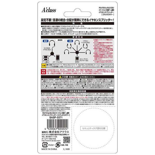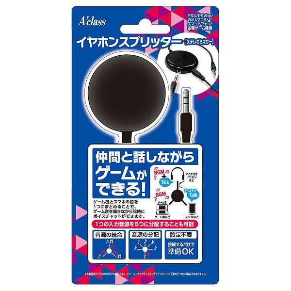 | 商品名 | PS4/PSVita/WiiU/3DS/スマートフォン/各種ゲーム機用 イヤホンスプリッター (ステレオミキサー) [SASP-0371] |