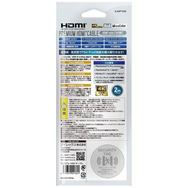 | 商品名 | PS4 Pro(UltraHD HDR 4K/60p)対応 プレミアム HDMI ケーブル(2m) [PS4 Pro] [ILX4P182] |