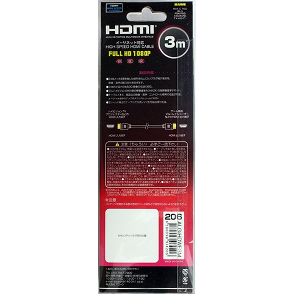 ゲーム用 HDMI ハイスピードイーサネットケーブル 300cm [PS4] [ALG-HDWE3M]