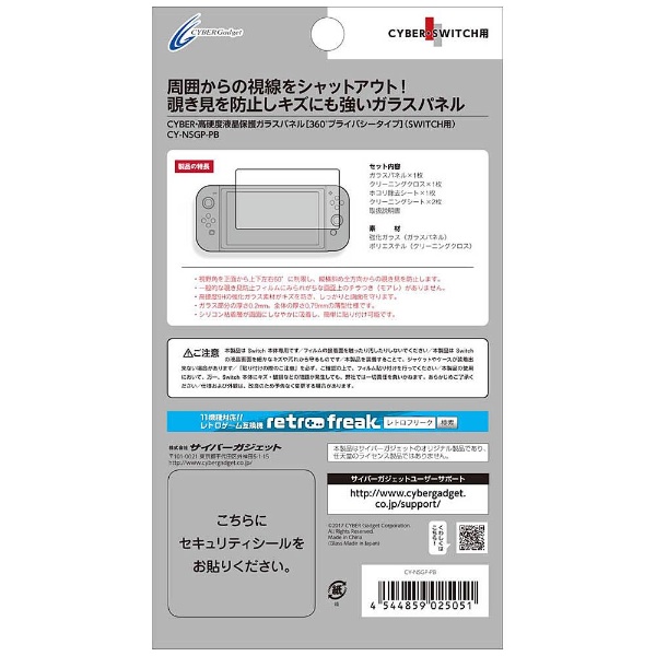 【在庫限り】 CYBER・高硬度液晶保護ガラスパネル [360°プライバシータイプ] (SWITCH用) 【Switch】 [CY-NSGP-PB]