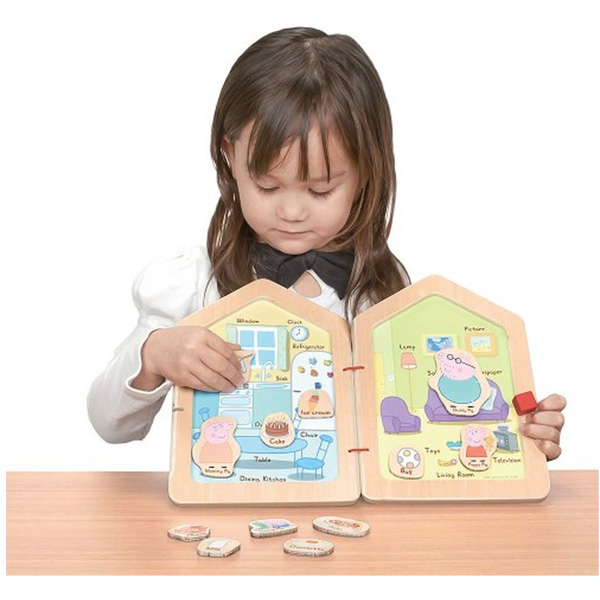 ペッパピッグのおうちのキッチンとリビングにマグネットピースを貼ってごっこ遊びが楽しめます。