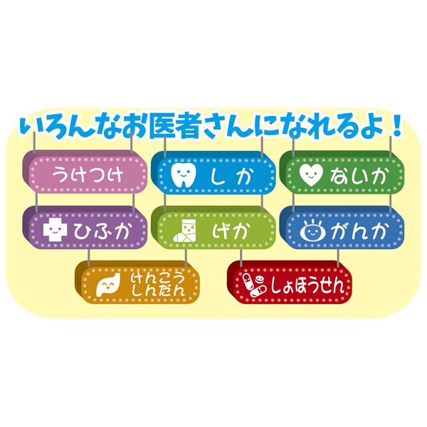 ぽぽちゃんの総合クリニックは、いろんなお医者さんになれるよ!