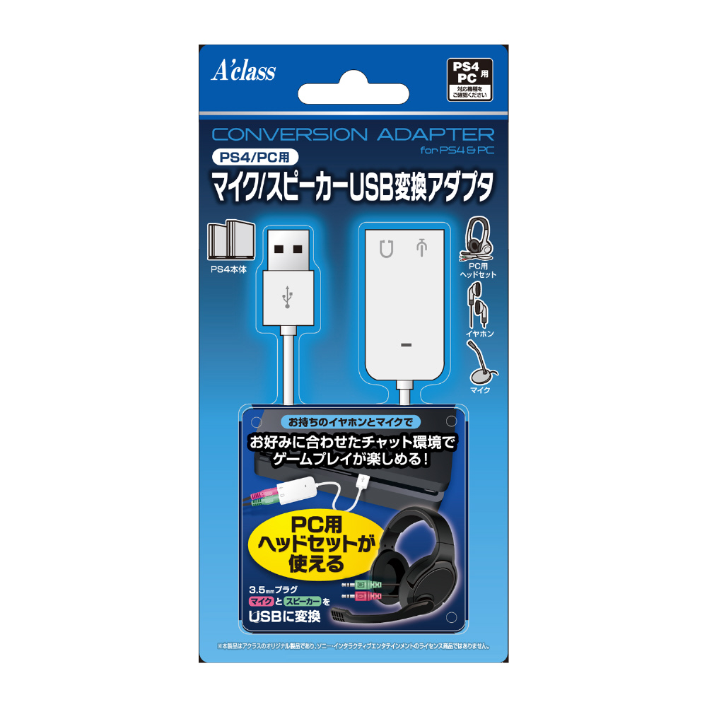 PS4/PC用 マイク/スピーカーUSB変換アダプタ [SASP-0465]