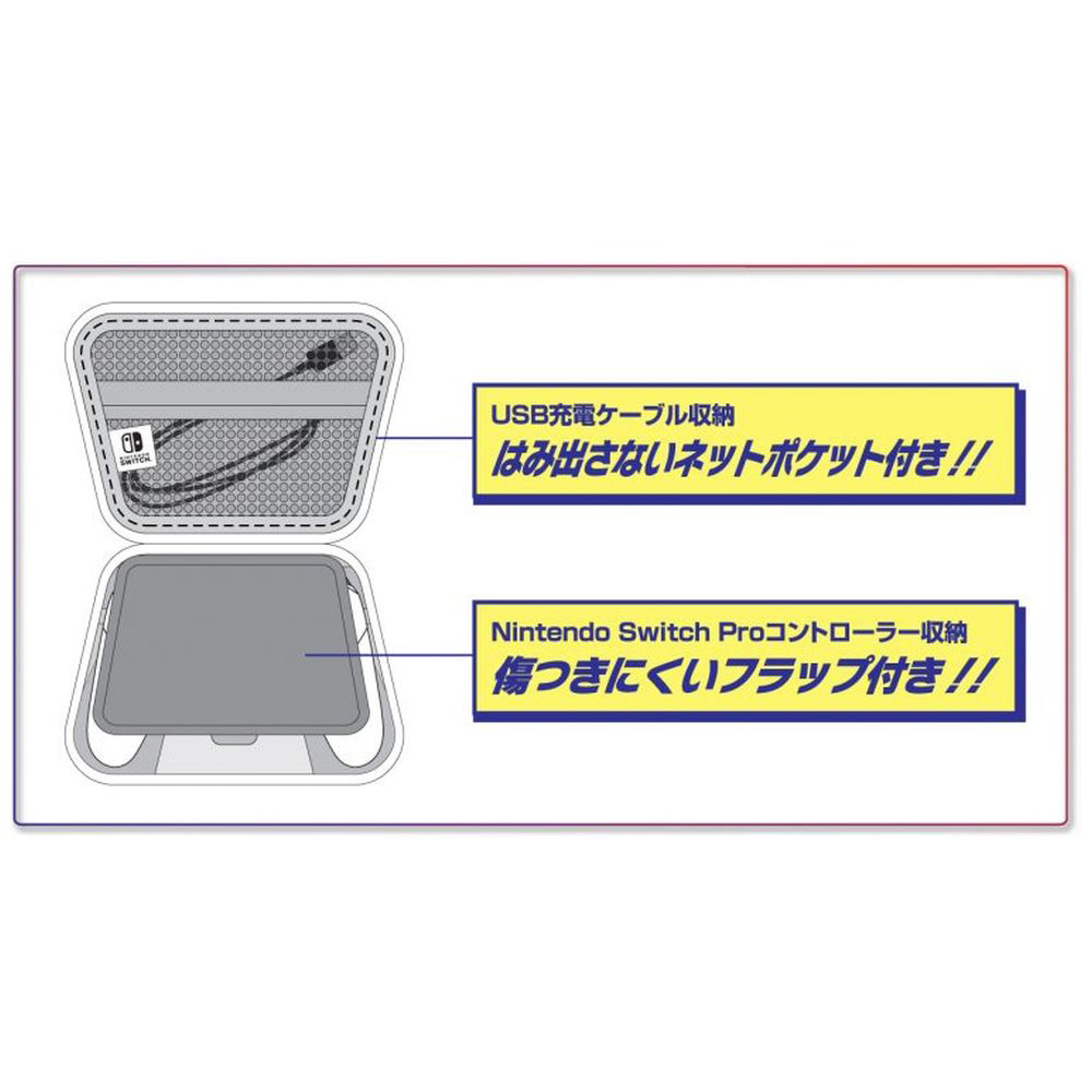 Nintendo Switch ProコントローラーとUSB充電ケーブルを収納することができます。