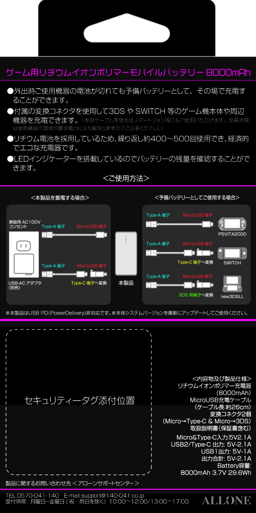 ゲーム用リチウムイオンポリマー充電器 8000mAh ブラック [ALG-GLP8BK]