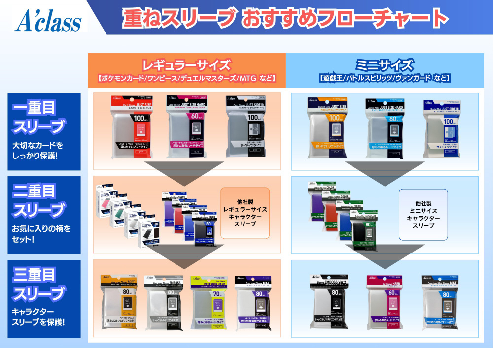 ・カードをより強固に保護でき、キャラクタースリーブに入れた際に適度な硬さと厚みを持たせることできます。