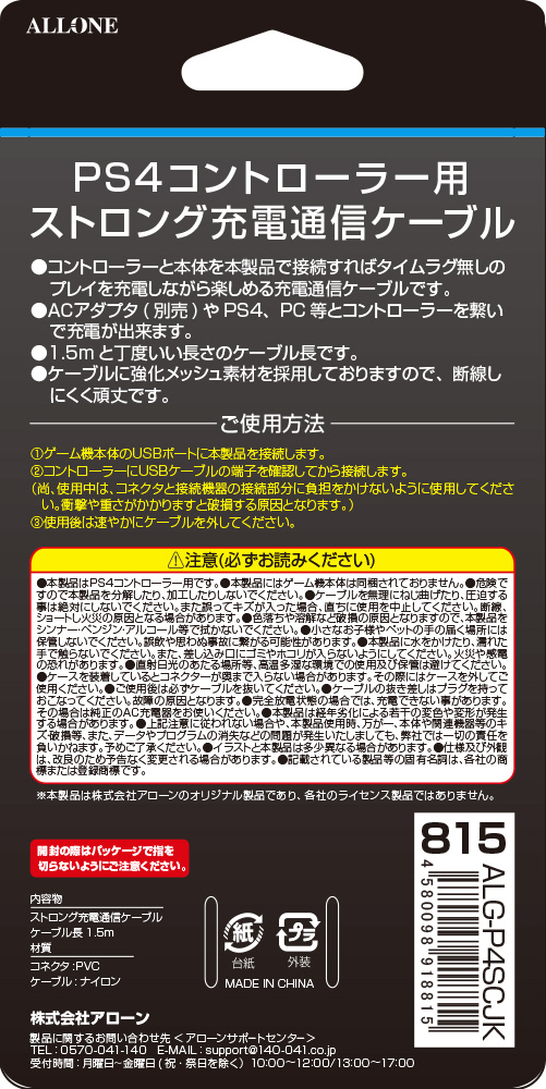 | 商品名 | PS4コントローラ用 ストロング充電通信ケーブル 1.5m |