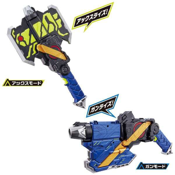 『仮面ライダーゼロワン』より、別売のプログライズキーをセット&スキャンして10種類の必殺技を発動できる「オーソライズバスター」が登場!アックスモードとガンモードの2モード変形!