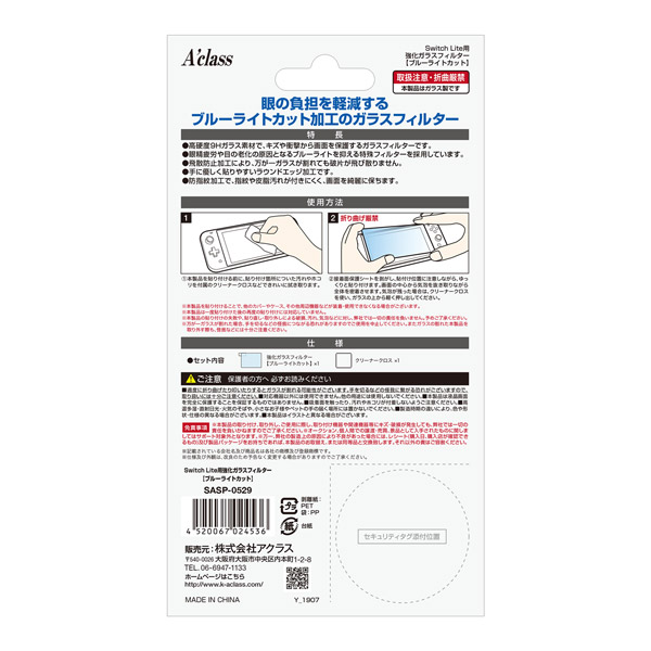 | 商品名 | Switch Lite用 強化ガラスフィルターブルーライトカット SASP-0529 【Switch Lite】 |
