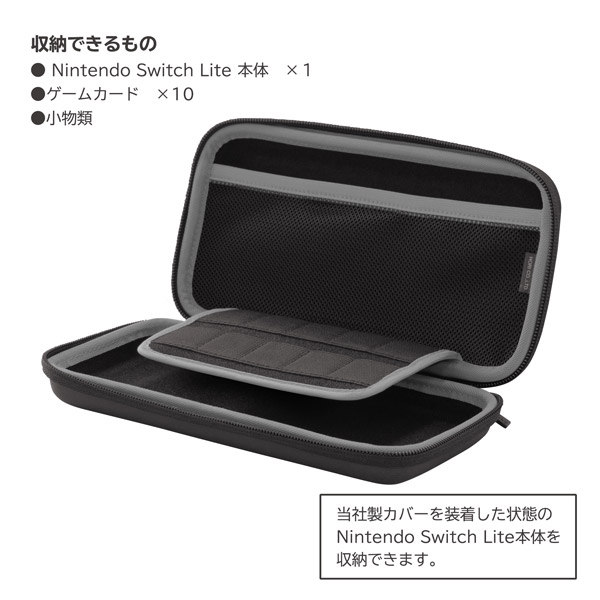 「Nintendo Switch Lite」1台と専用ゲームカードが10枚収納可能+凹凸加工で衝撃を吸収する耐久性に優れたポーチです!