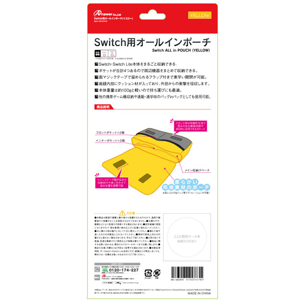 | 商品名 | Switch Lite共用 オールインポーチ(イエロー) ANS-SW008YE 【864】 |