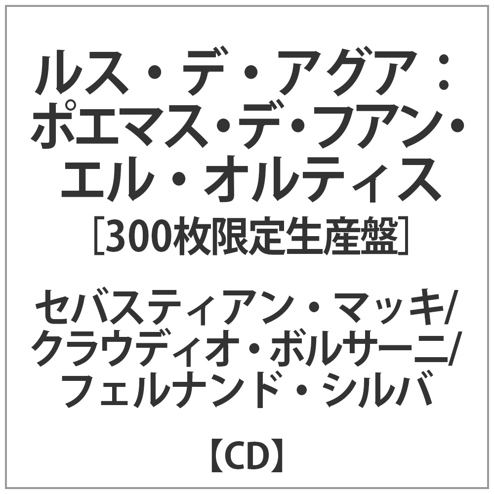 | 商品名 | セバスティアン・マッキ/クラウディオ・ボルサーニ / ルス・デ・アグア / ポエマス・デ・フア 【CD】 |