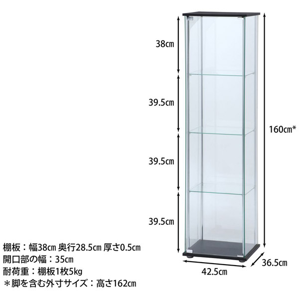 ガラスコレクションケース 4段 高さ160cm ブラウン 96047 【852】