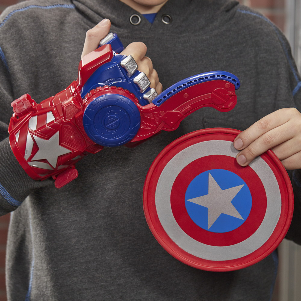映画『アベンジャーズ/エンドゲーム』のキャラクター「キャプテン・アメリカ」の ナーフシールドスリング ディスクランチャー。