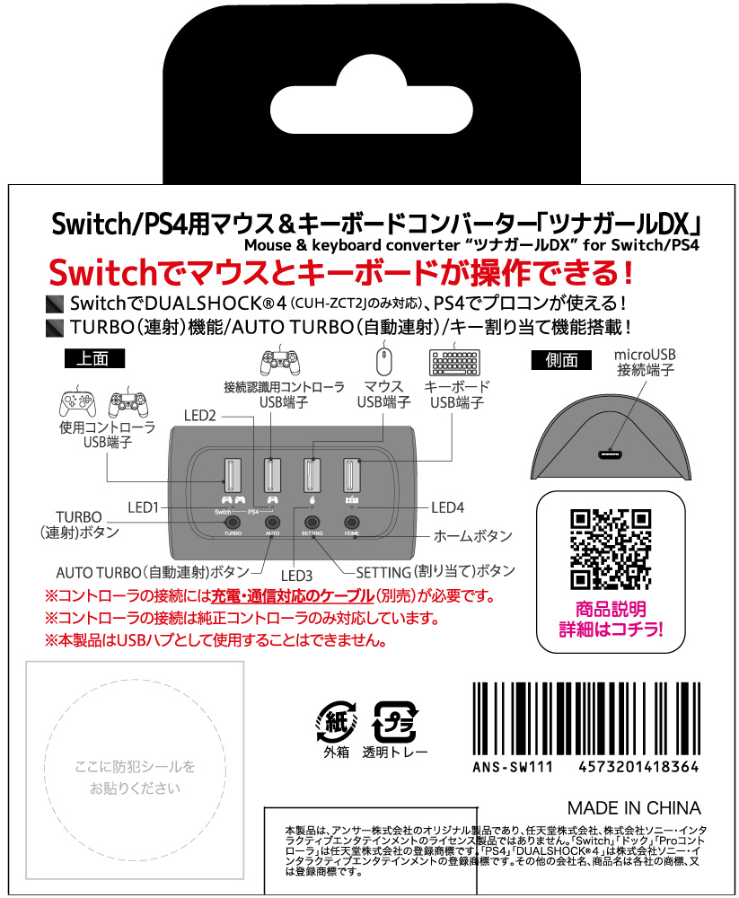 | 商品名 | Switch/PS4用 マウス&キーボードコンバーター |