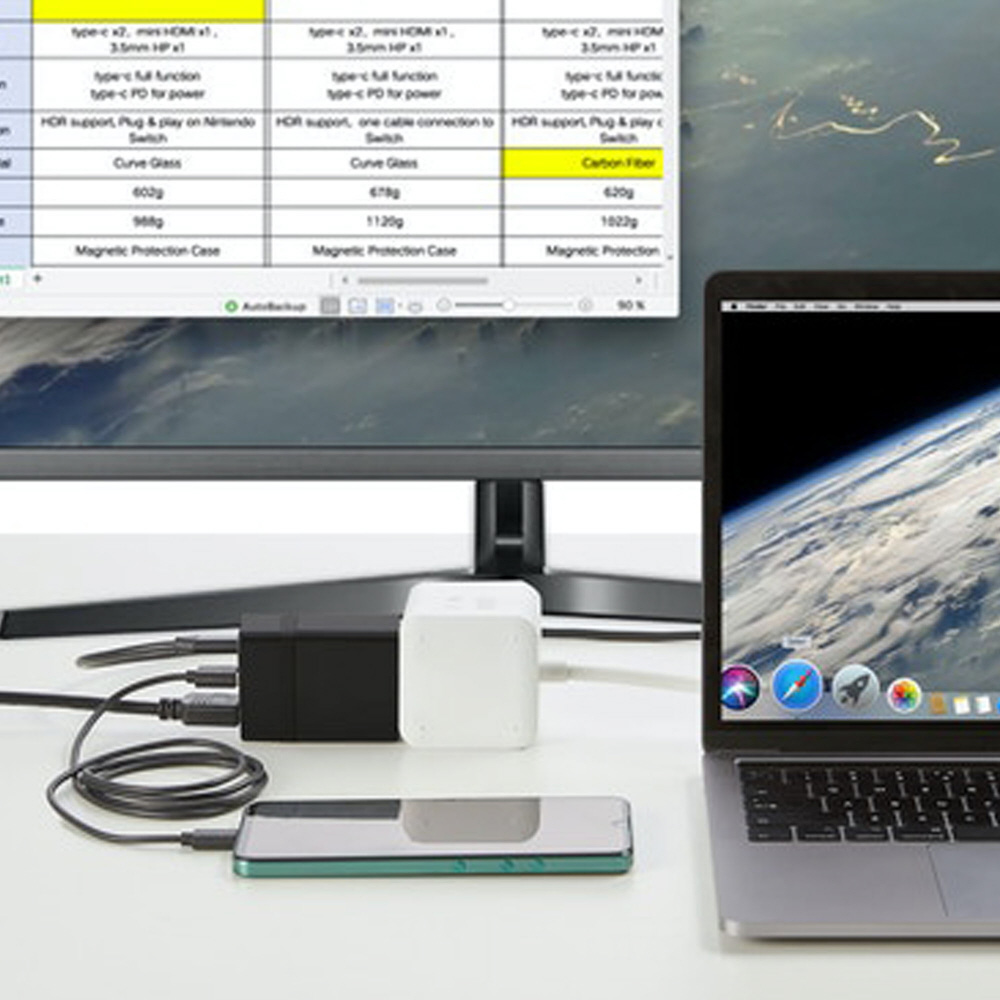 Type-CタイプのPD電源と互換性があり、他のACアダプターもしくはモバイルバッテリーにドック単体を装着できます。