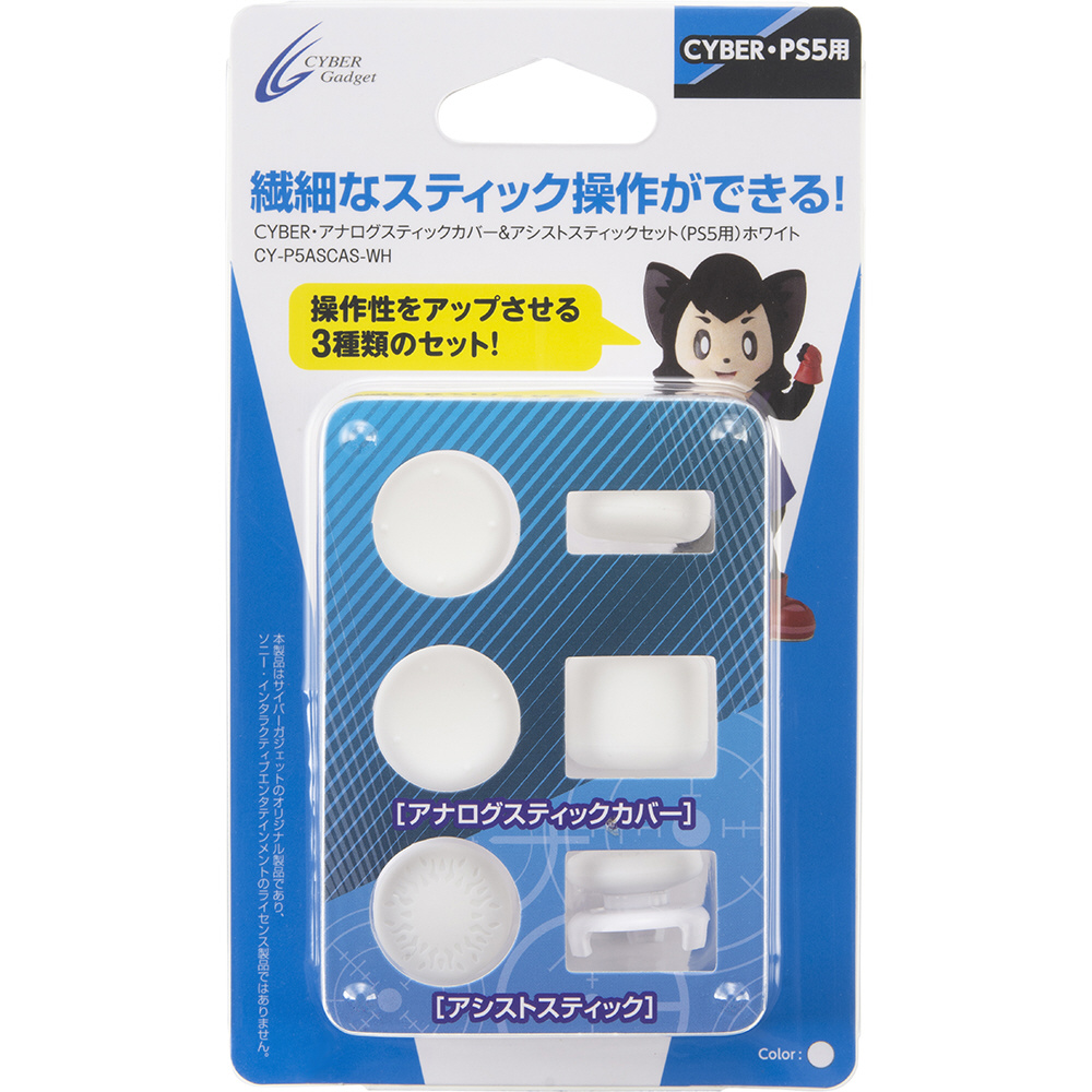 PS5用 アナログスティックカバー&アシストスティックセット ホワイト CY-P5ASCAS-WH