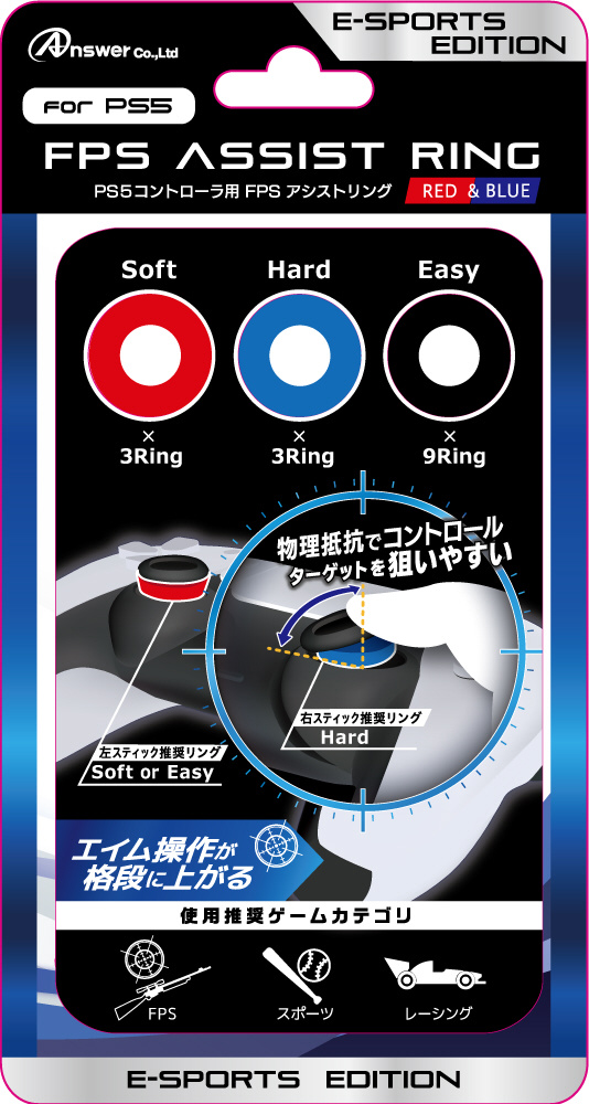 | 商品名 | PS5コントローラ用 FPSアシストリング(レッド&ブルー) ANS-PSV004RB |