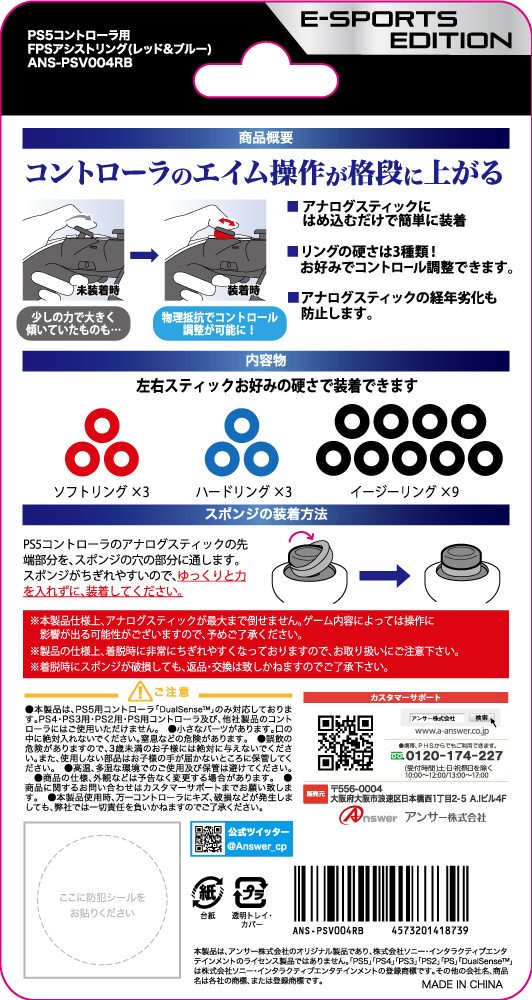 PS5コントローラ用 FPSアシストリング(レッド&ブルー) ANS-PSV004RB