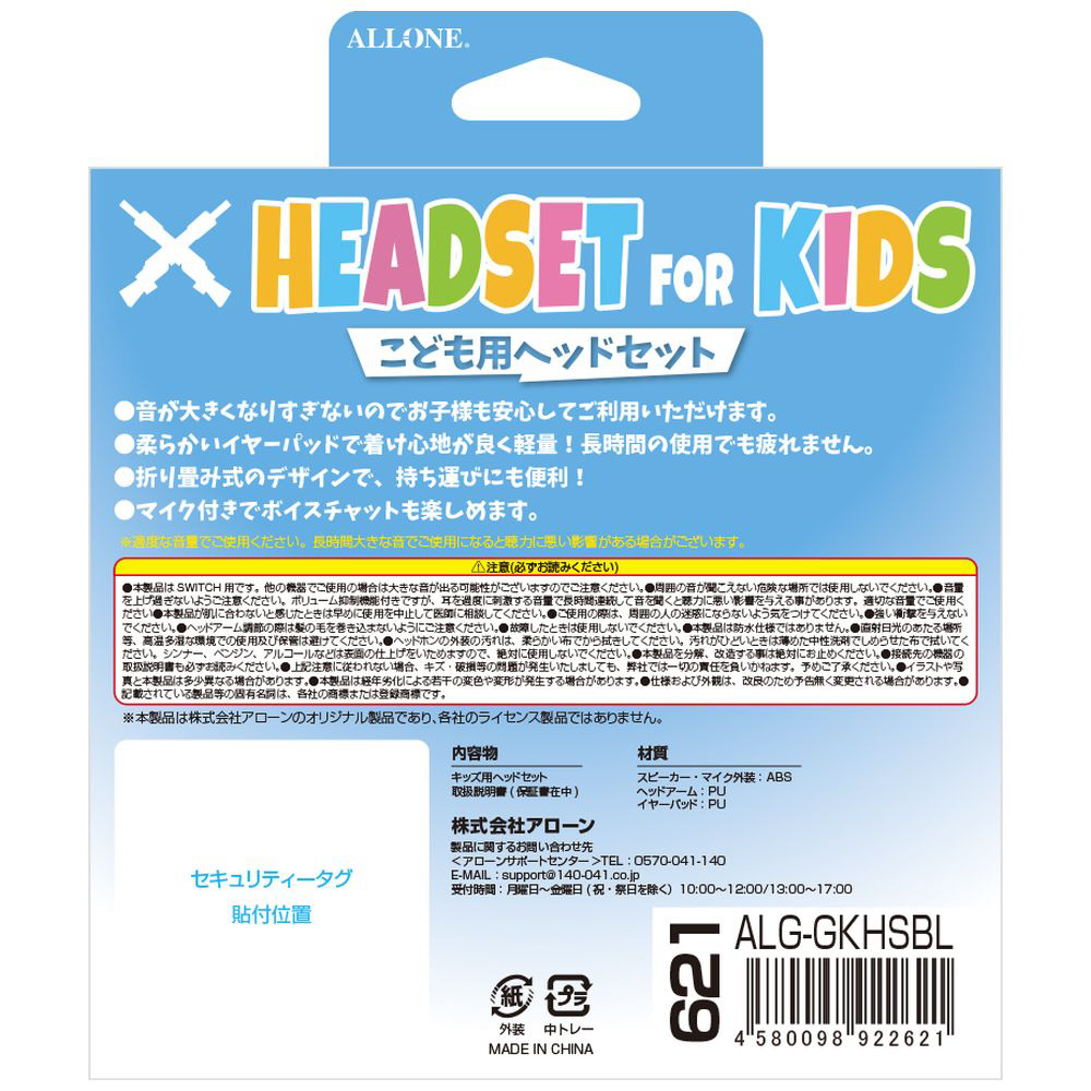 | 商品名 | キッズ用ヘッドセット BL ALG-GKHSBL |