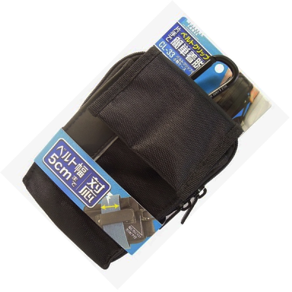 片手で着脱簡単なベルトクリップ式小物ケース。ベルト幅5cmまで対応。作業用ベルトにも装着できます。大きめスマートフォンに対応サイズです。スマートフォン、ペン等の作業用小物入れに!!。
