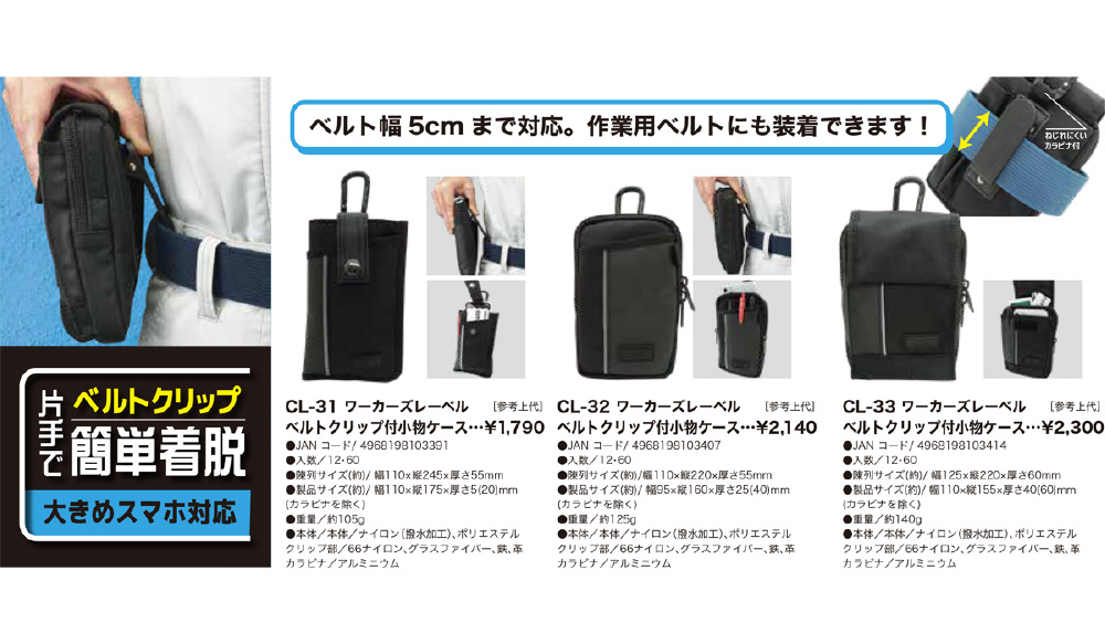 | 商品名 | WORKERS LABEL 小物ケース ベルトクリップ付 ワーカーズレーベル (WORKERS LABEL) CL-33 |