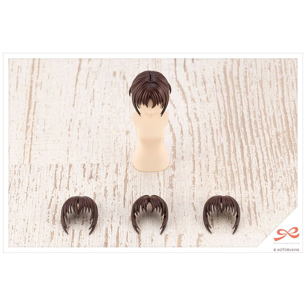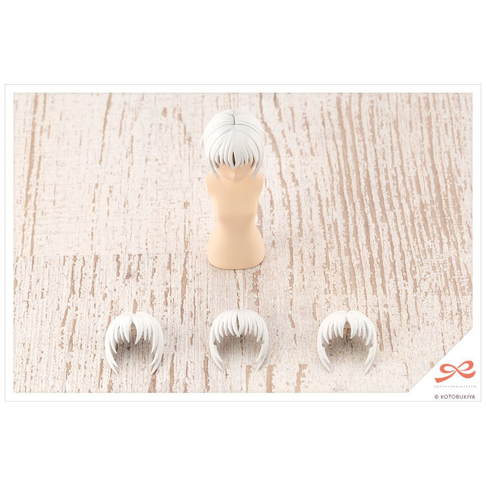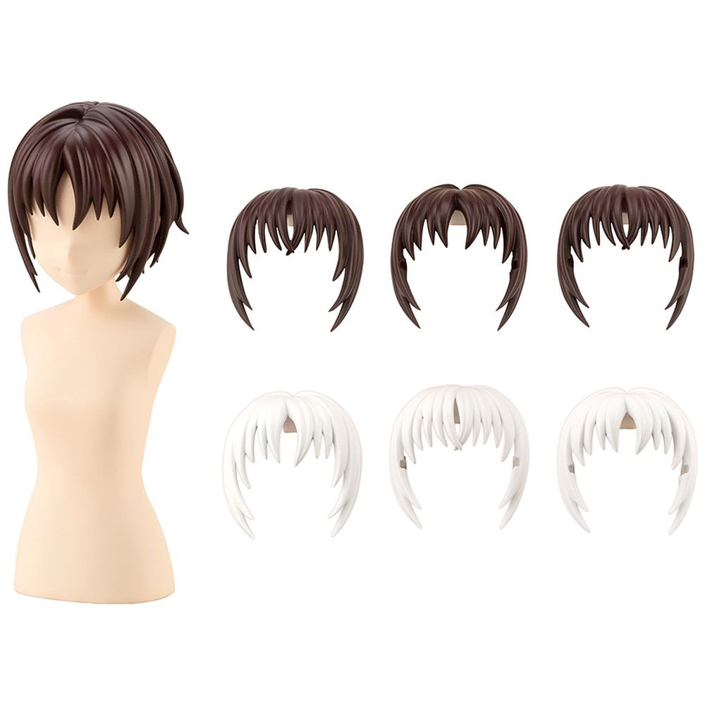 前髪の分け目デザインが異なる2タイプが付属するほか、別売のメガネセット対応の前髪パーツが付属するので