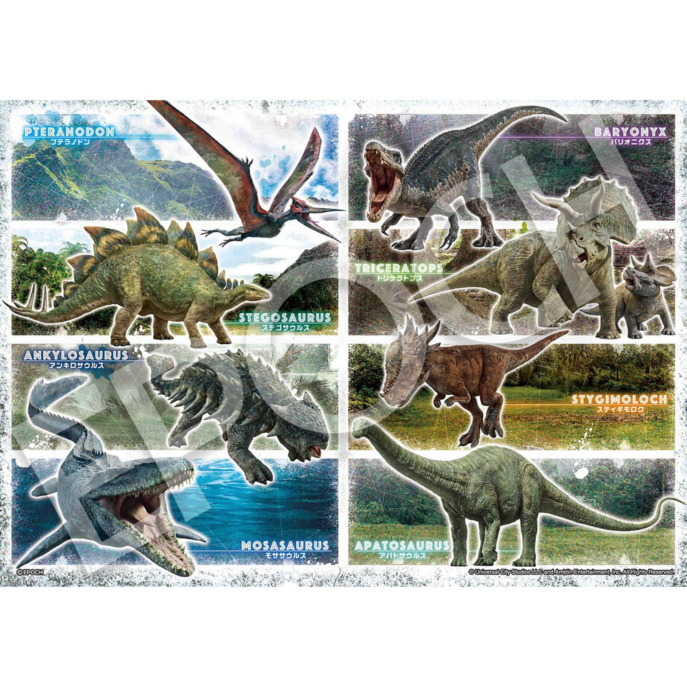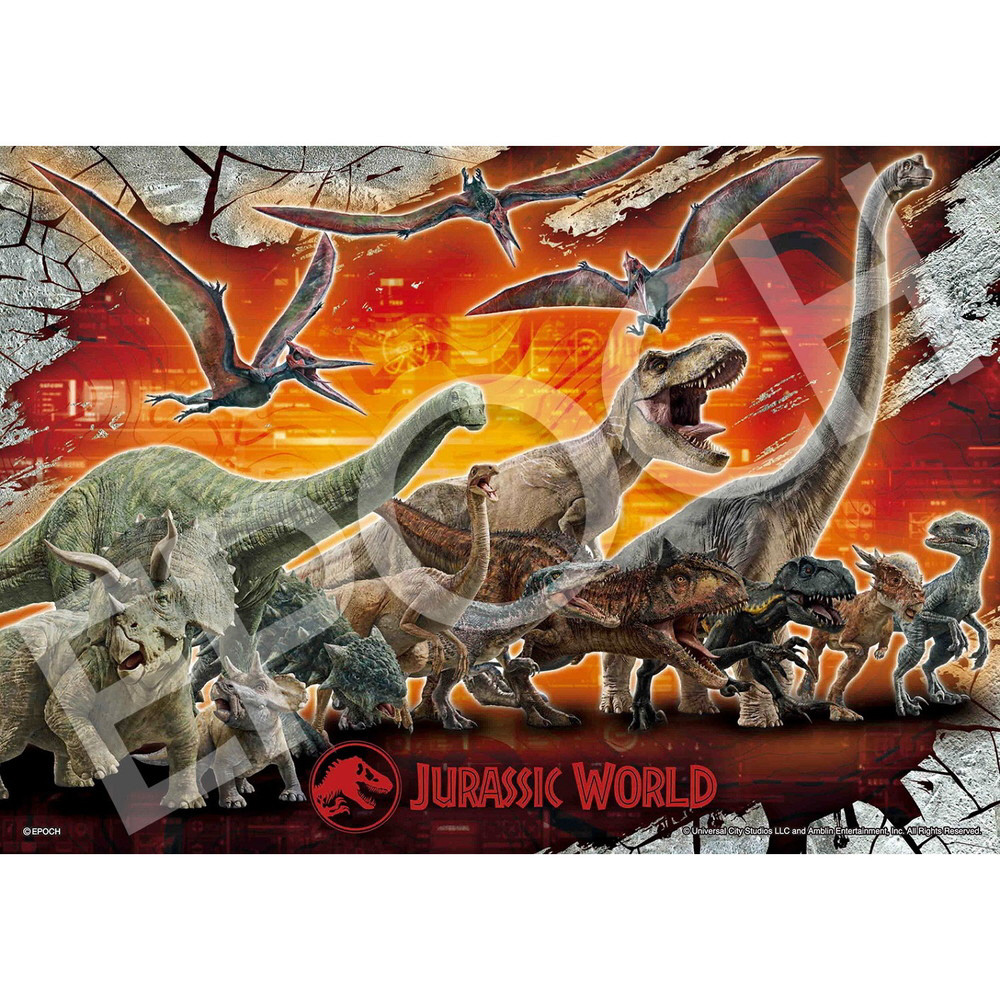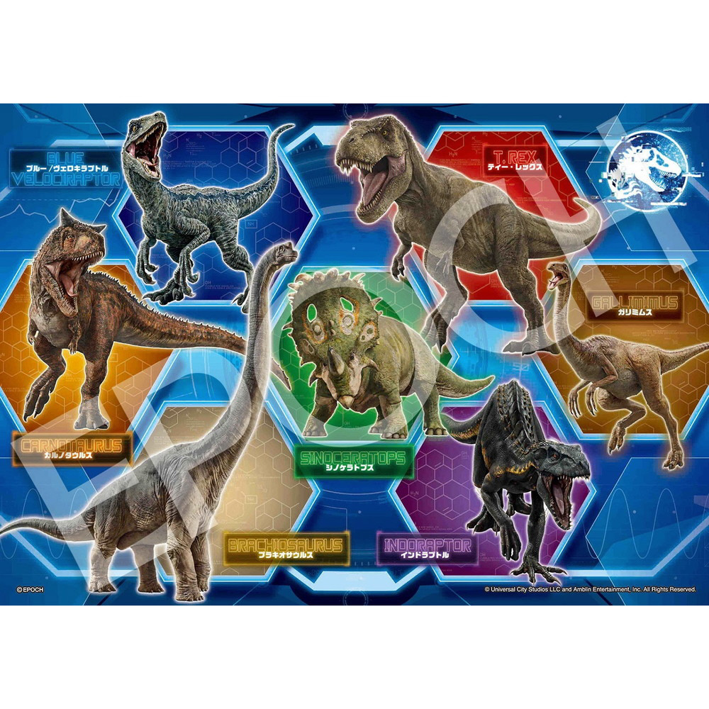 42ピースは映画のストーリーで中核を担う恐竜たちがサイバー感のある色とりどりの背景で勢ぞろいした組みやすい絵柄、