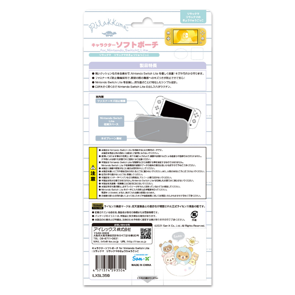 San-Xの人気キャラクター「リラックマ(リラックマのきょうりゅうごっこ)」をあしらったかわいいクッション性高いネオプレーン素材のニンテンドーSWITCH Lite専用収納インナーソフトポーチです。