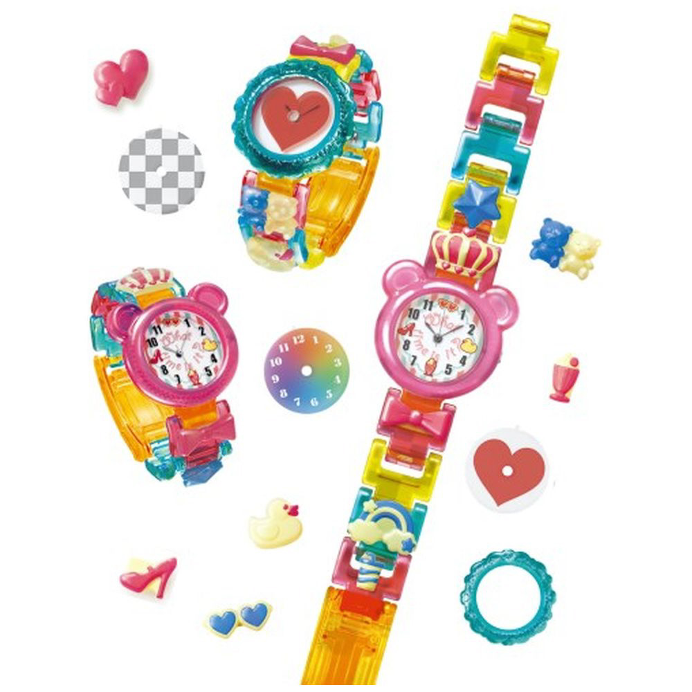 パーツを組み合わせて自分だけのクリアでかわいい腕時計が作れます!