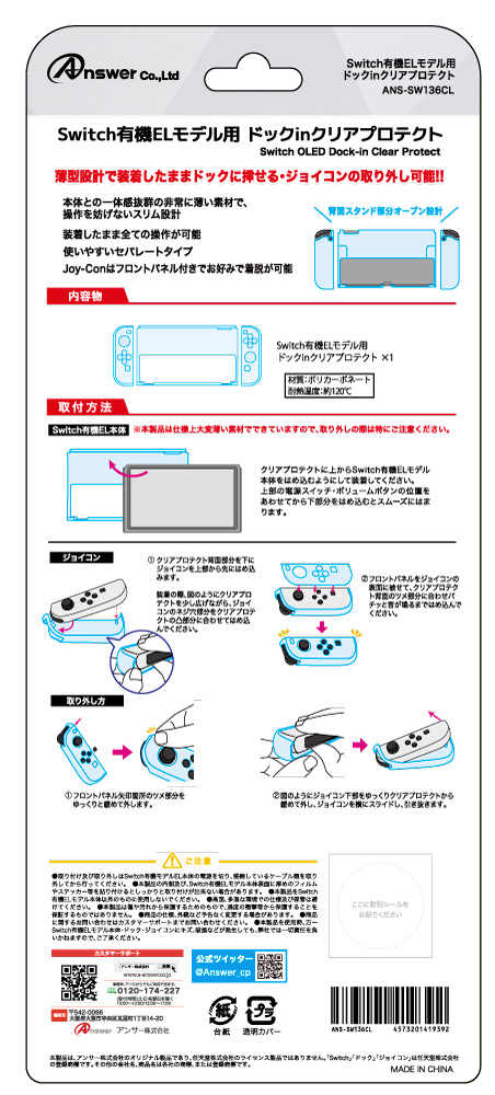 | 商品名 | Switch有機ELモデル用ドックinクリアプロテクト ANS-SW136CL 【864】 |
