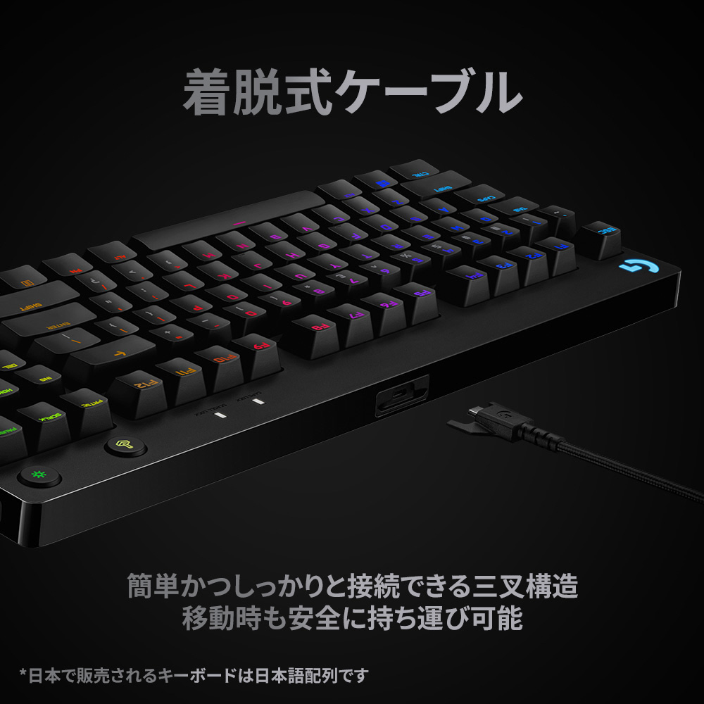 ■テンキーがなくコンパクトなので、狭いデスク上でもマウスを動かすためのスペースを確保できます。ケーブルは、キーボードを持ち運ぶ際に便利な着脱式です。