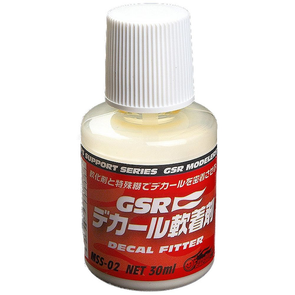 曲面や凹凸面へのデカール貼りに必須のGSRオリジナル特殊糊配合のデカール軟着剤。