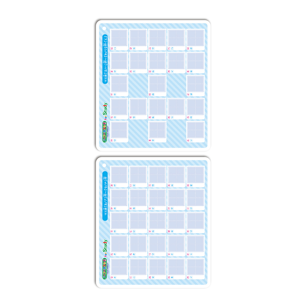 練習ボード8枚(ひらがな2枚・カタカナ2枚・練習マス目2枚・すうじ1枚・ABC1枚)●専用細書きペン●リング付きペンホルダー1個