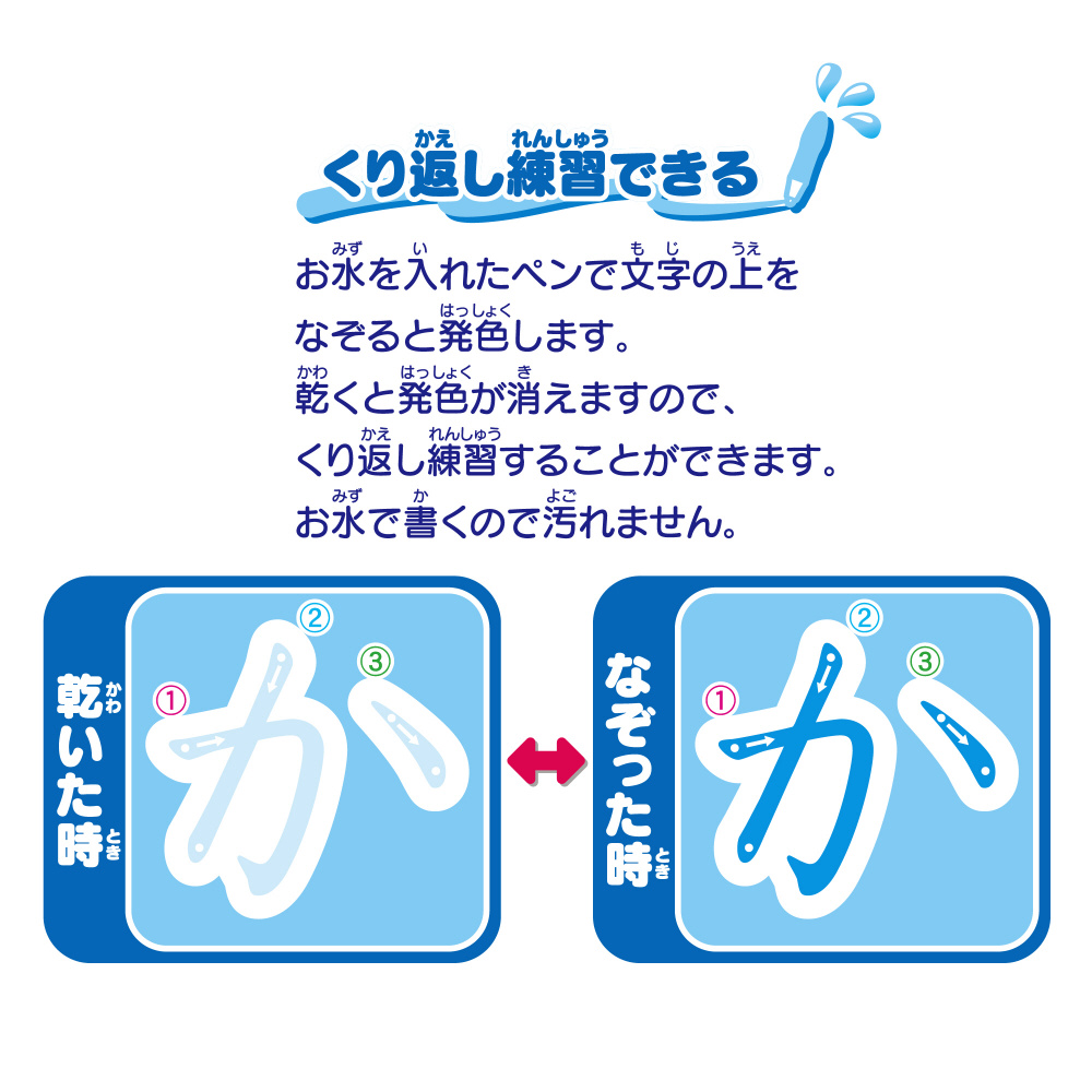 乾くと消えるので繰り返し練習できます。
