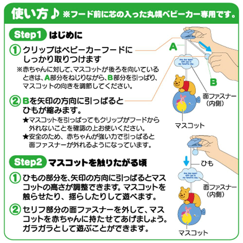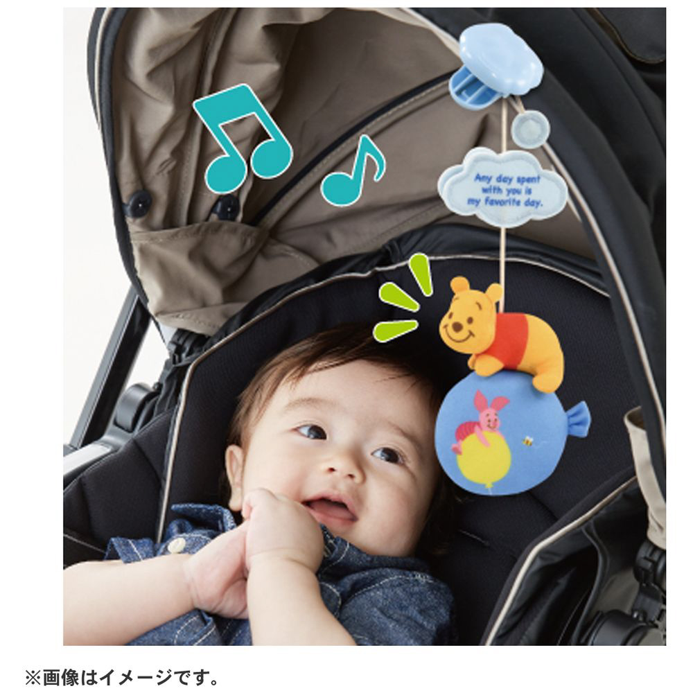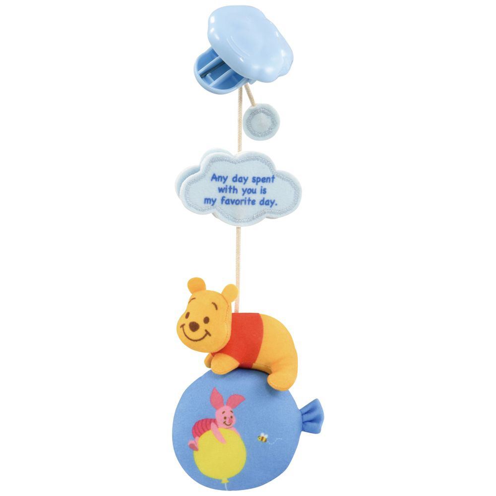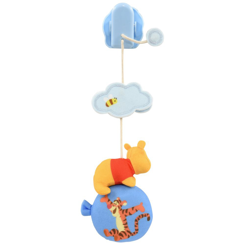 ベビーカーの幌(サンシェード部分)に取り付けるとやさしいチャイム音がするプーさんのマスコットです。