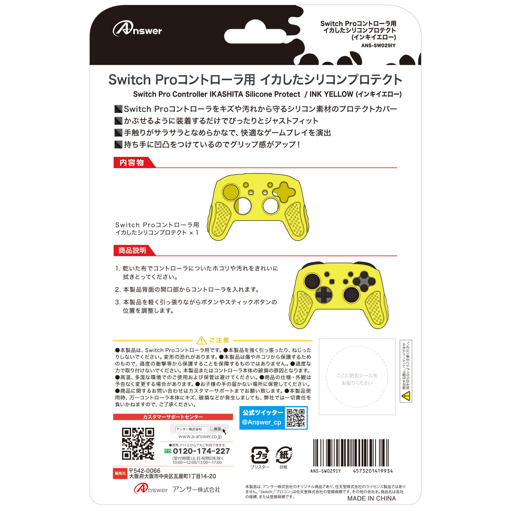 | 商品名 | SwitchProコントローラ用イカしたシリコンプロテクト(インキイエロー) ANS-SW029IY 【852】 |