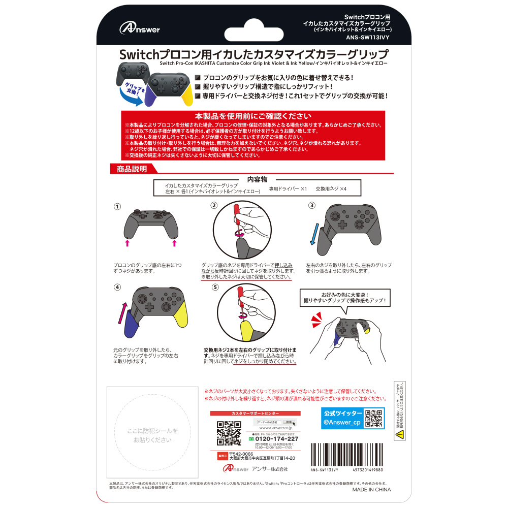 Switchプロコン用イカしたカスタマイズカラーグリップ(インキイエロー&インキバイオレット) ANS-SW113IVY