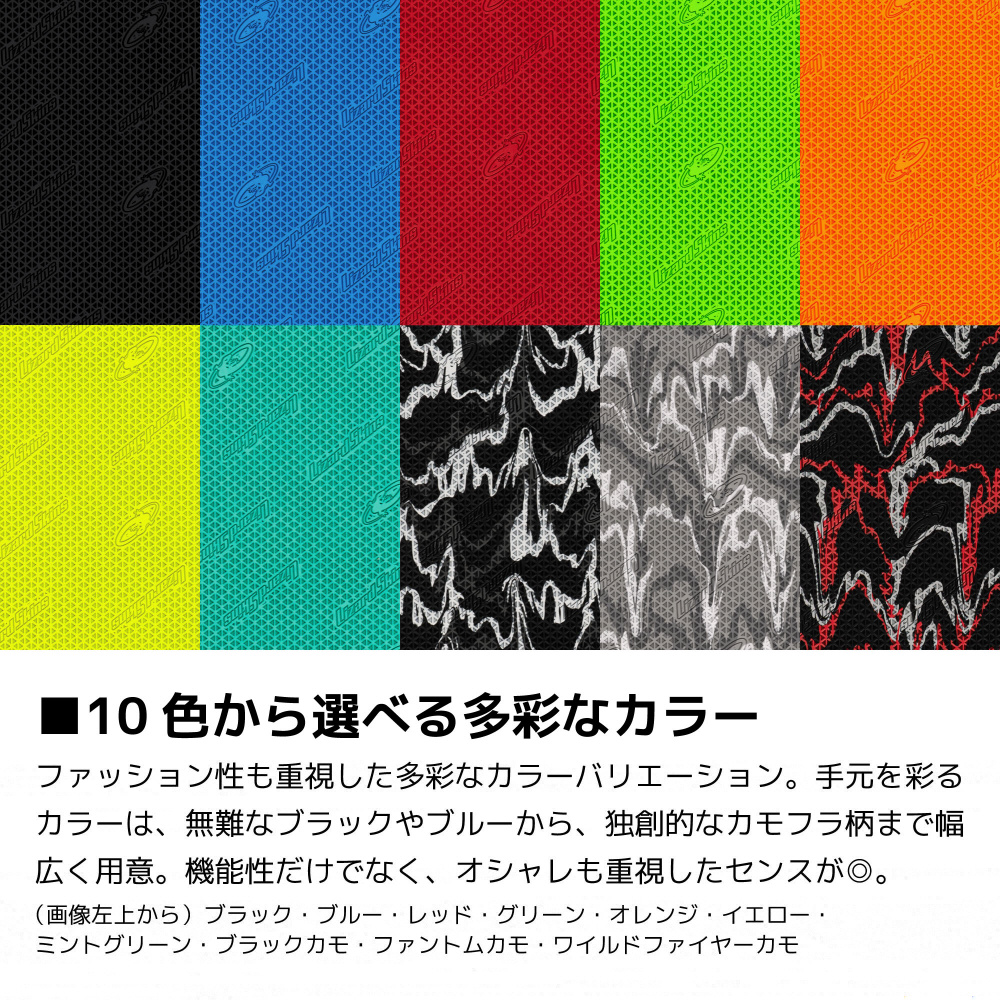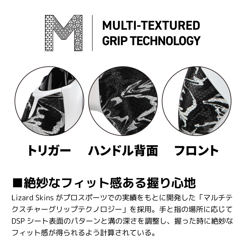 Lizard Skinsがプロスポーツでの実績をもとに開発した「マルチテクスチャーグリップテクノロジー」を採用。