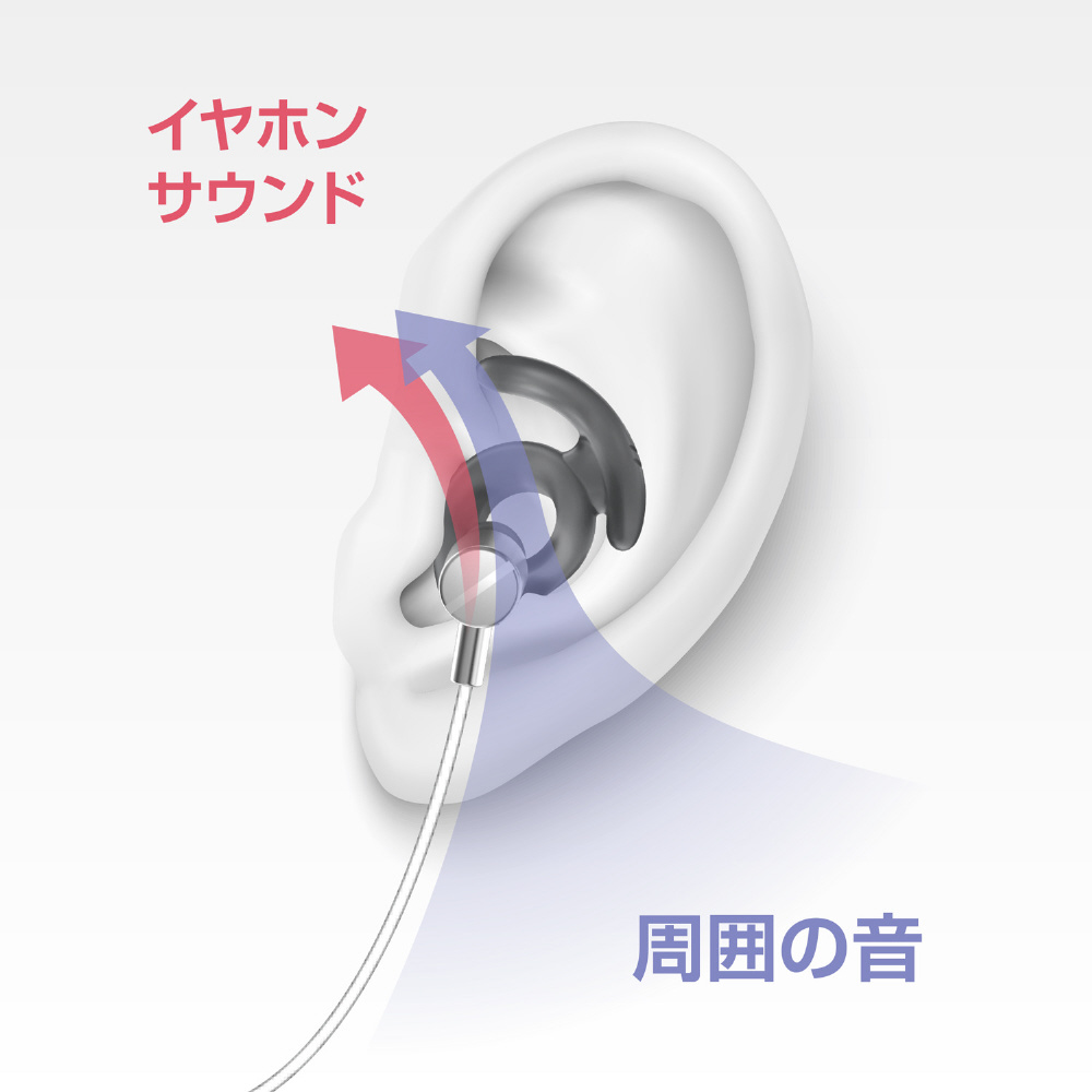 ●サウンドと一緒に周囲の音が聞こえるリングホルダーは、耳道の圧迫がなく蒸れにくい構造で、長時間でも快適にご使用いただけます。