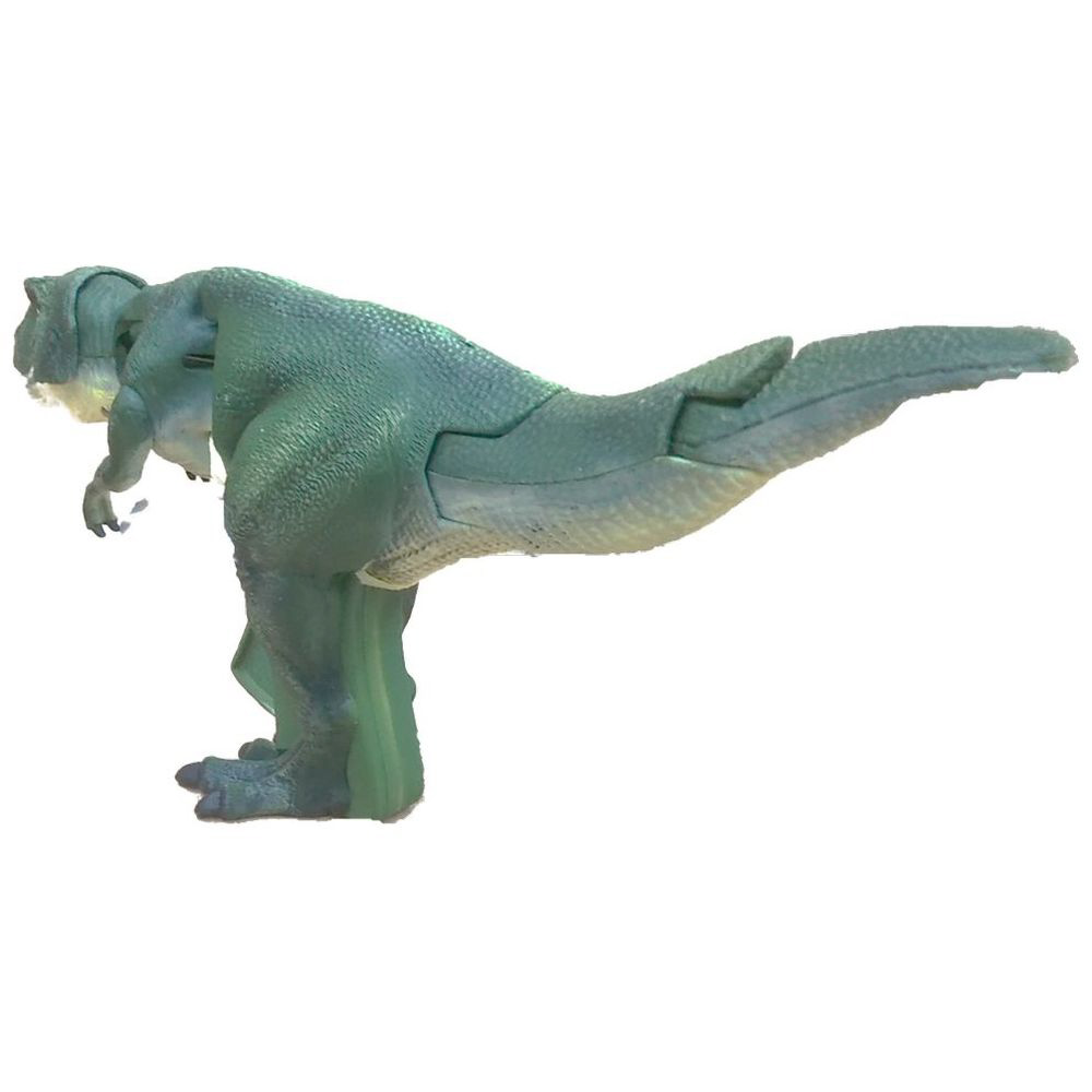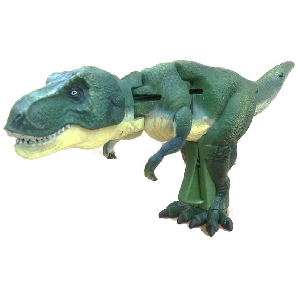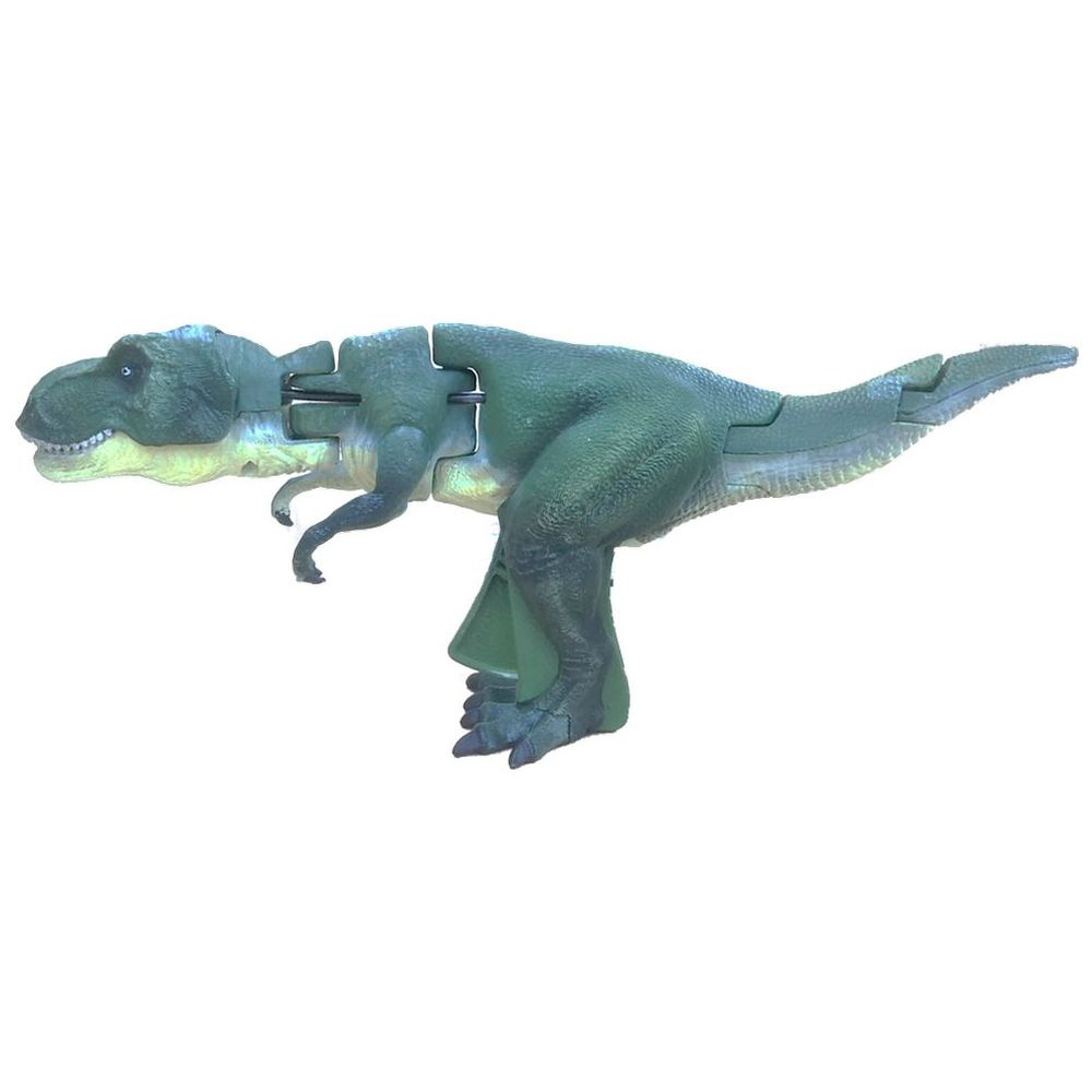 リアルなティラノザウルスのフィギュアのトリガーを引くと、まるで生きているように大暴れ。