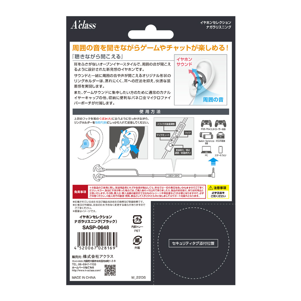 | 商品名 | イヤホンセレクション ナガラリスニング ブラック SASP-0648 【864】 |