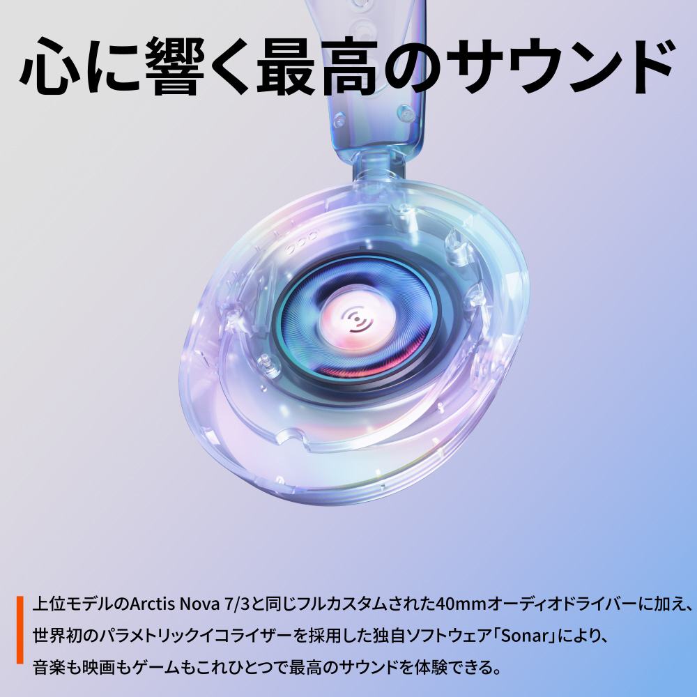 クールでミニマルなデザイン。フルカスタマイズされたサウンドドライバーで、ゲームはもちろん、音楽にも映画にも使えるヘッドセット。