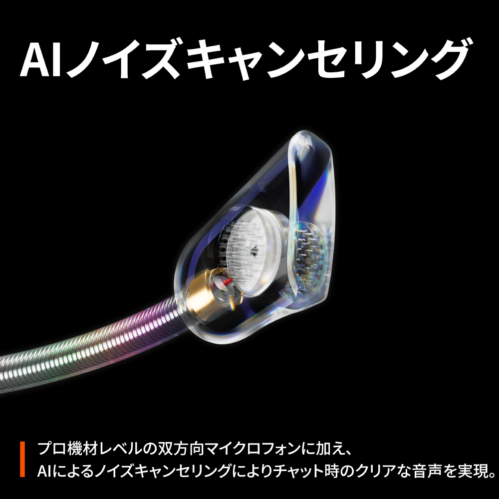 双方向性マイクの採用により、外部音声をモニタリングすると同時にノイズを消し込みます。あなたの声だけを相手に届けることが可能です。
