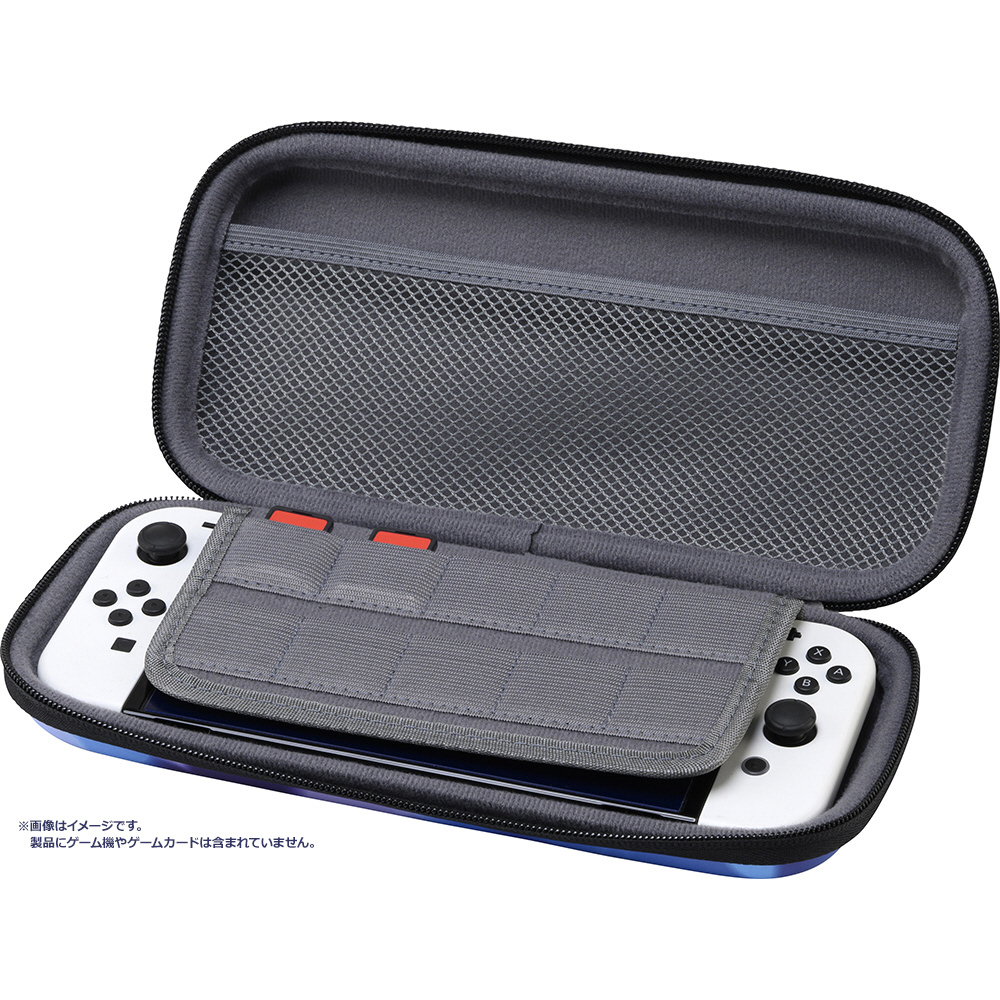 人気格闘ゲーム「メルティブラッド」デザインのSwitch本体およびSwitch(有機ELモデル)本体を収納できるポーチです。ポーチには本体にJoy-Conを装着したまま収納が可能です。デザインは「アルクェイド × 遠野」と「シエル × アルクェイド」の2種類をご用意しました。素材は軽量で衝撃に強いEVA、ケース内側には起毛素材を採用しており、大切なSwitch本体をキズや衝撃からしっかりと保護します