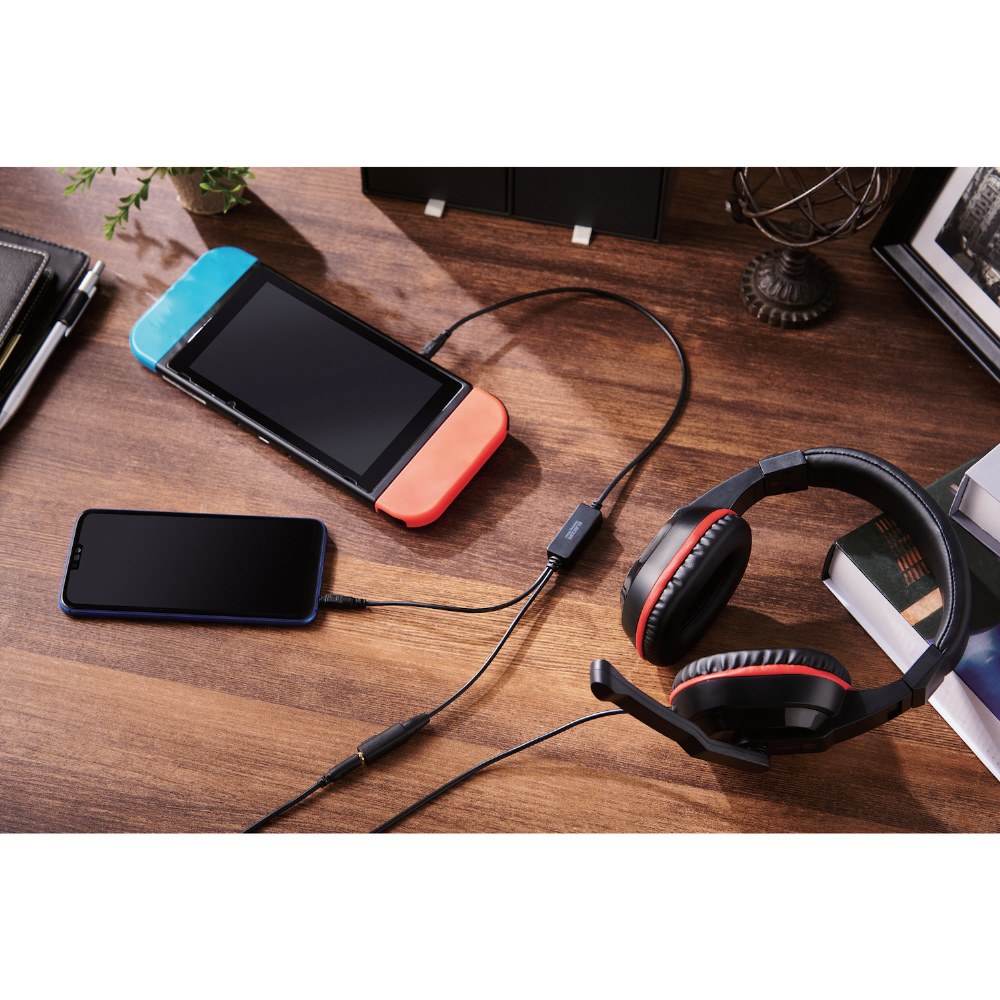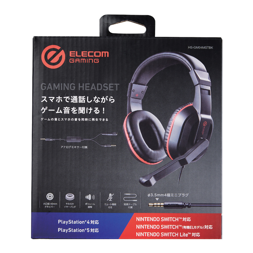 PlayStation(R)4/5、NINTENDO SWITCH(TM)でのボイスチャットに最適!ゲームの音とスマートフォンの音をミックスして同時に再生できるアナログミキサーを付属した両耳オーバーヘッドタイプのゲーミングヘッドセットです。手元のインラインコントローラーでマイクミュートや音量調整に対応し、ゲーム機やパソコンから離れた場所でも使用できる便利な約1.5mの延長ケーブルも付属しています。