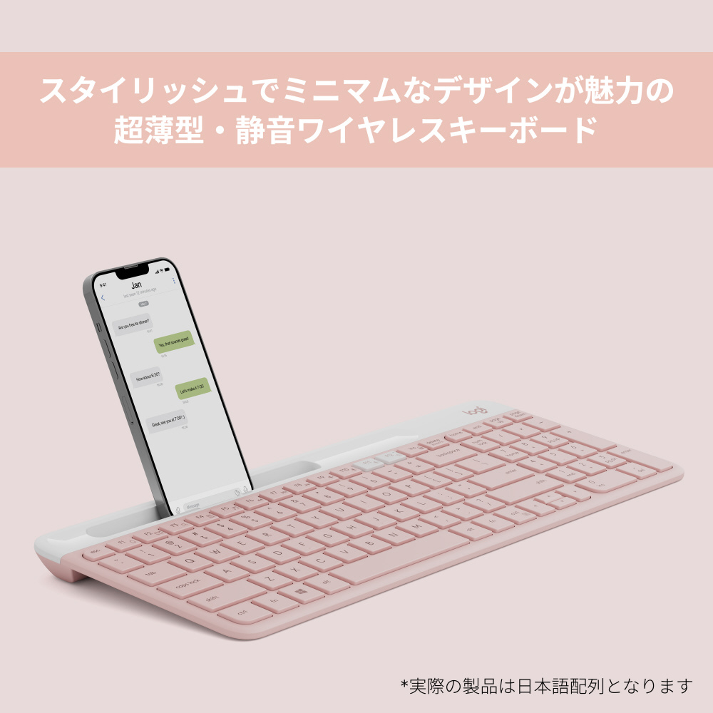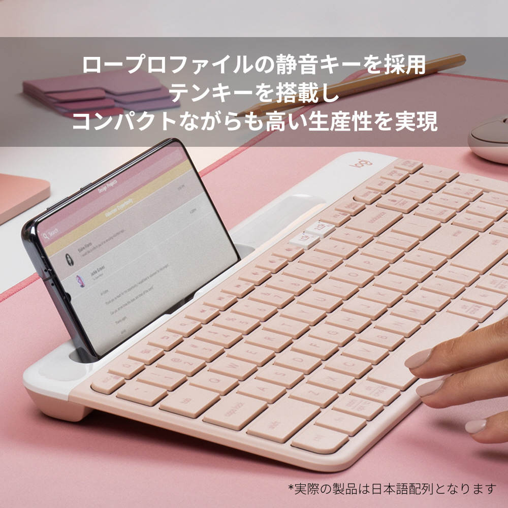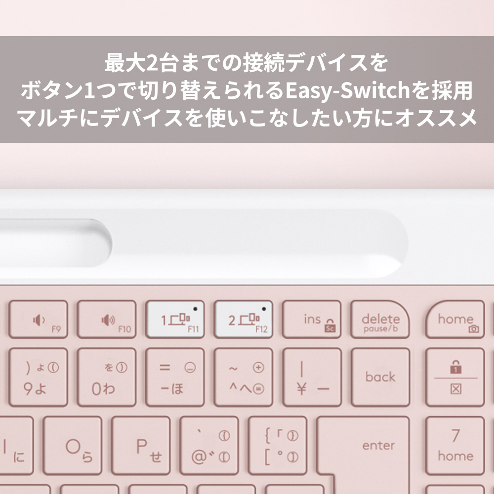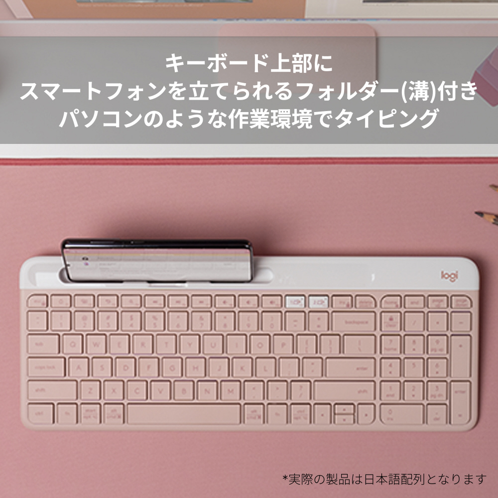 キーボード K580スリム マルチデバイス(Chrome/Android/iPadOS/iOS/Mac/Windows11対応) ローズ K580RO [ワイヤレス /Bluetooth・USB] 【sof001】