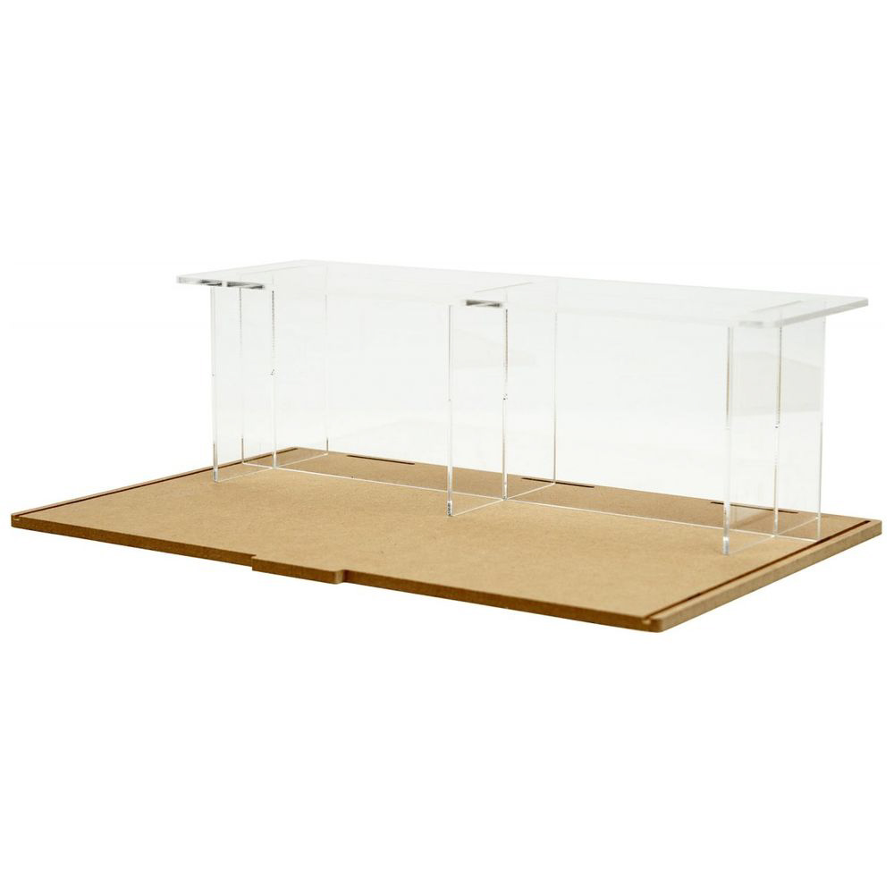 箱庭技研の“コレクションケースL”シリーズでご利用いただける1段、高さ100mmのアクリルステージです。